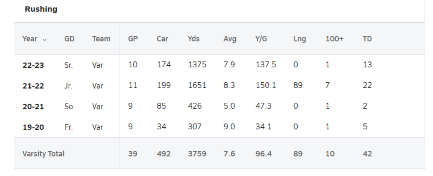 His outlook past 2023 looks a bit more rosey as he should be able to learn under the new college system and cement his role as the seasons go on. Overall, I think the talent wins out in this case, and we see Baxter take it to the next level after 2023 and take the reins alongside Blue as a top-level 1-2 punch; he should be able to perhaps meet his projected draft capital of the 2nd or 3rd round.